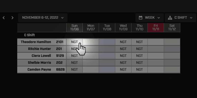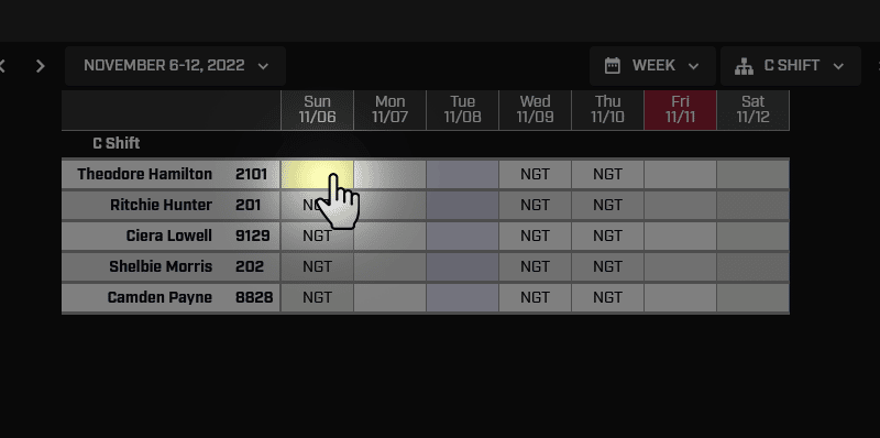 The request is sent to your supervisor and your shift is replaced with a yellow box – which indicates a PENDING time off request.